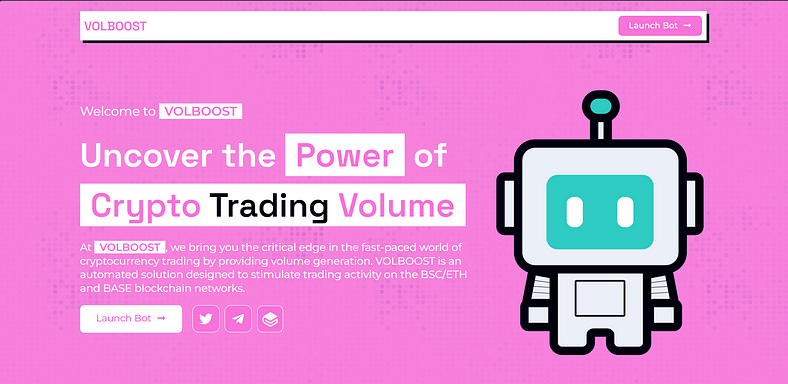 Volume-boosting bots like VolBoost simulate organic trading activity to inflate volume metrics.
